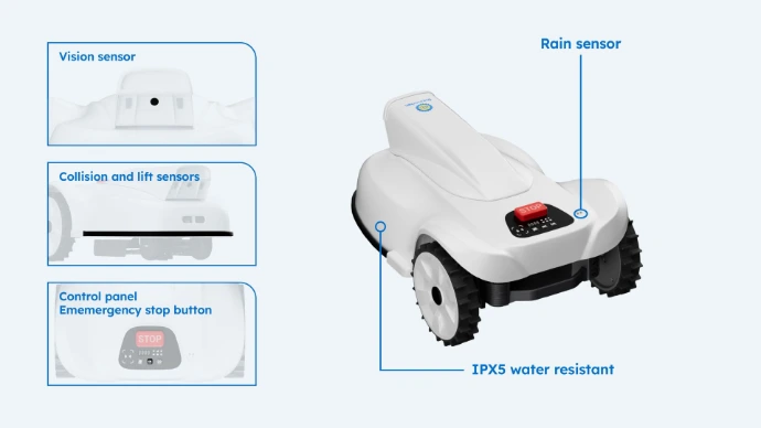 Il détecte et contourne activement les jouets, les animaux domestiques ou le mobilier de jardin, garantissant une tonte sereine même dans un jardin de famille vivant.