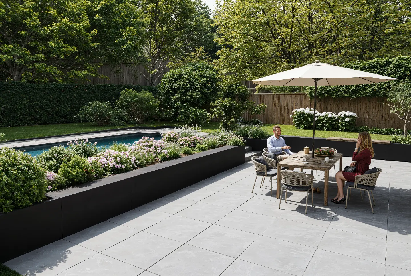 Enfin, nous nous occupons de tout : conception, coordination et finitions pour un projet clé en main — détails sur mesure (éclairages, escaliers, éléments feu & eau, plantations...) réunis dans une même signature, durable et élégante.