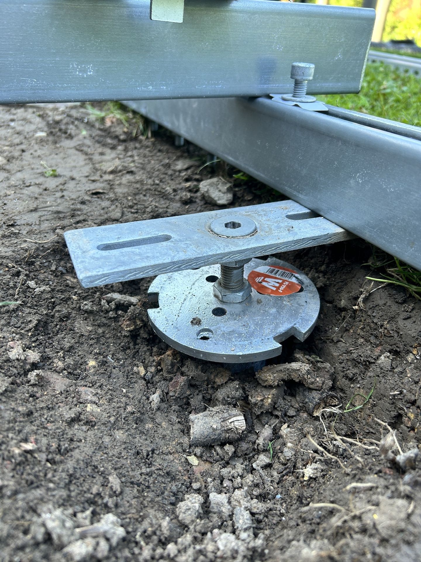 Sur chaque vis, un appui réglable au millimètre met la structure parfaitement de niveau, même en pente.